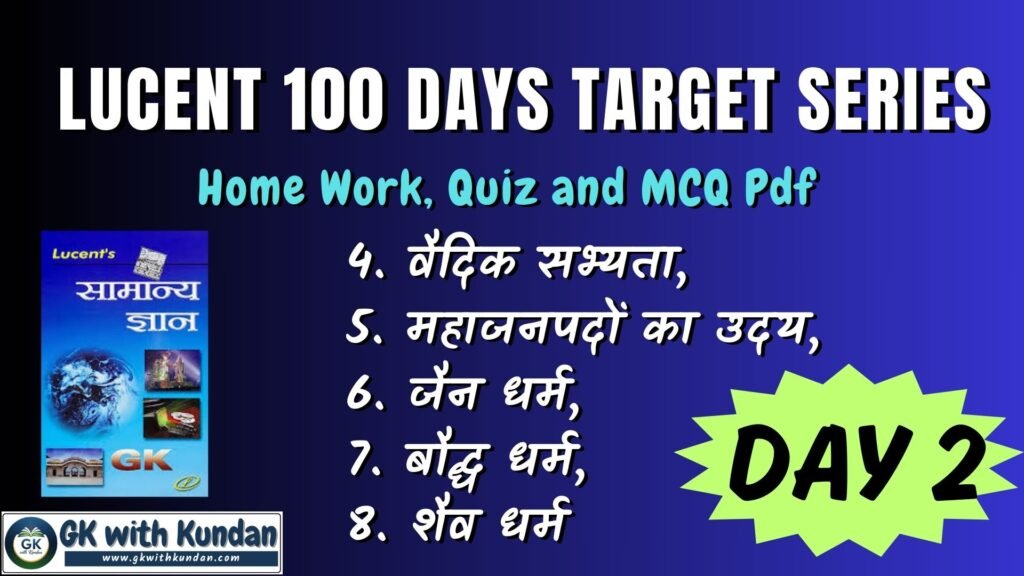 Lucent Day 2 Target; Home Work, Quiz and Quiz Pdf (4. वैदिक सभ्यता, 5. महाजनपदों का उदय, 6. जैन धर्म, 7. बौद्ध धर्म, 8. शैव धर्म)