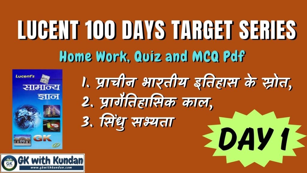 Lucent Day 1 Target; Home Work, Quiz and Quiz Pdf (1. प्राचीन भारतीय इतिहास के स्रोत, 2. प्रागैतिहासिक काल, 3. सिंधु सभ्यता)