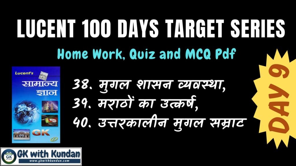 Lucent Day 9 Target; Home Work, Quiz and Quiz Pdf (38. मुगल शासन व्यवस्था, 39. मराठों का उत्कर्ष, 40. उत्तरकालीन मुगल सम्राट)